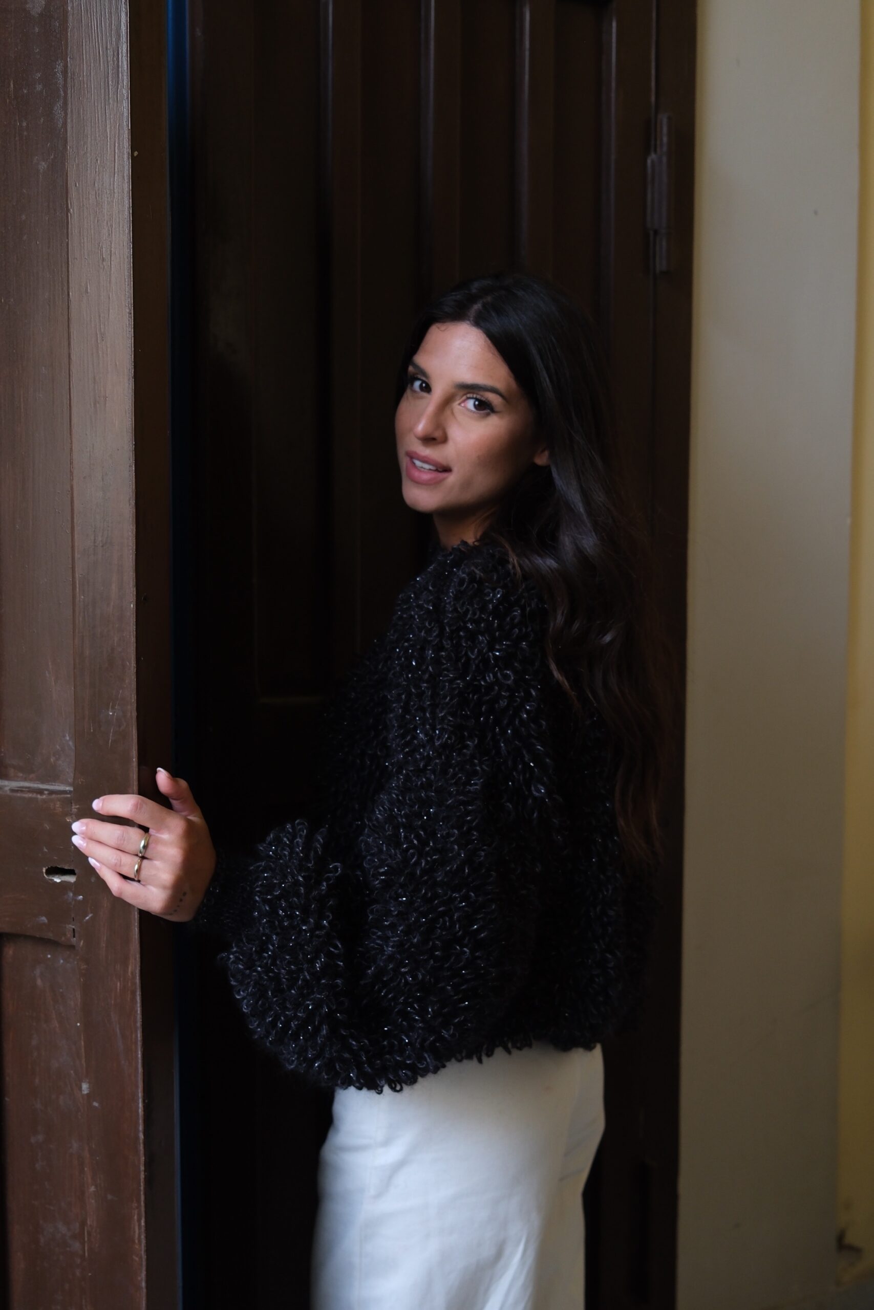 Un abbraccio di stile e morbidezza. Bomber Pelliccia è realizzato a mano in un filato boucle effetto pelliccia, caldo e leggero al tempo stesso. La silhouette ampia e le maniche voluminose si fondono con il collo morbido e la chiusura centrale, creando un capo dallo spirito deciso ma avvolgente.